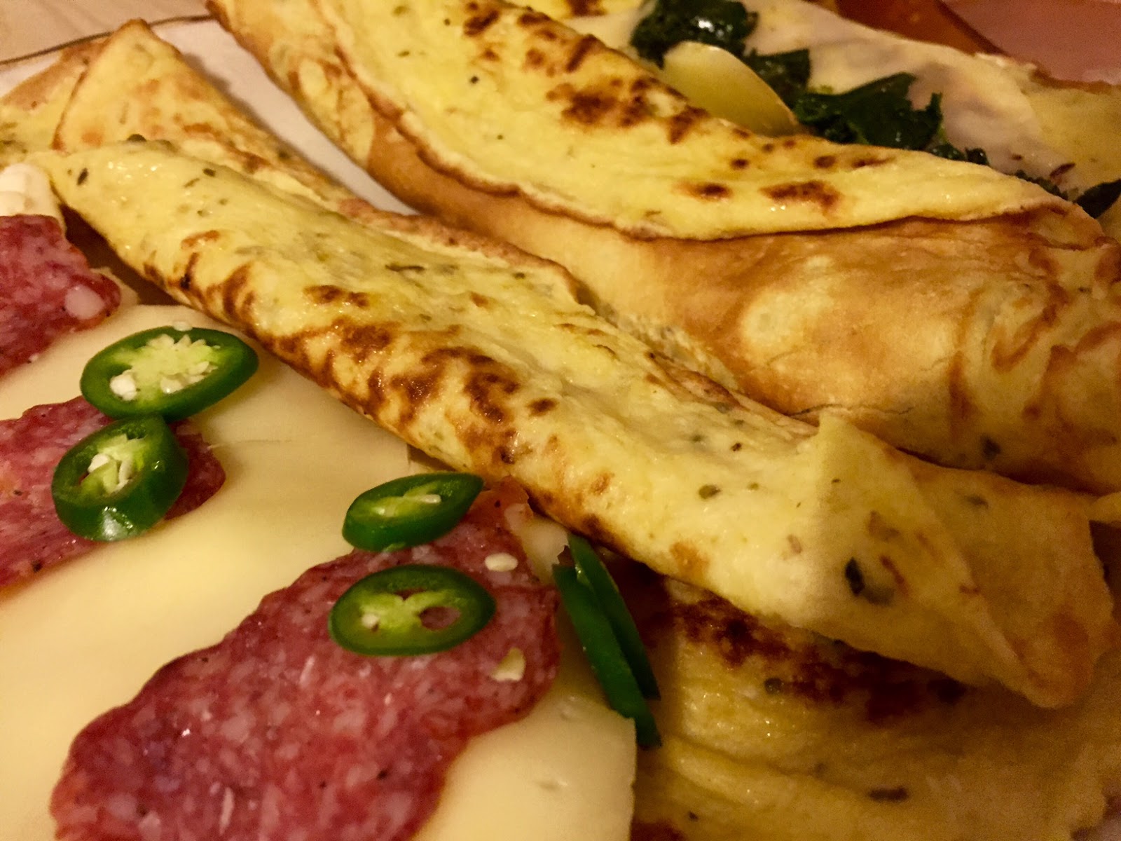Pokrájíme si sýry, nebo klidně uzeninu a hotové palačinky plníme podle chuti.