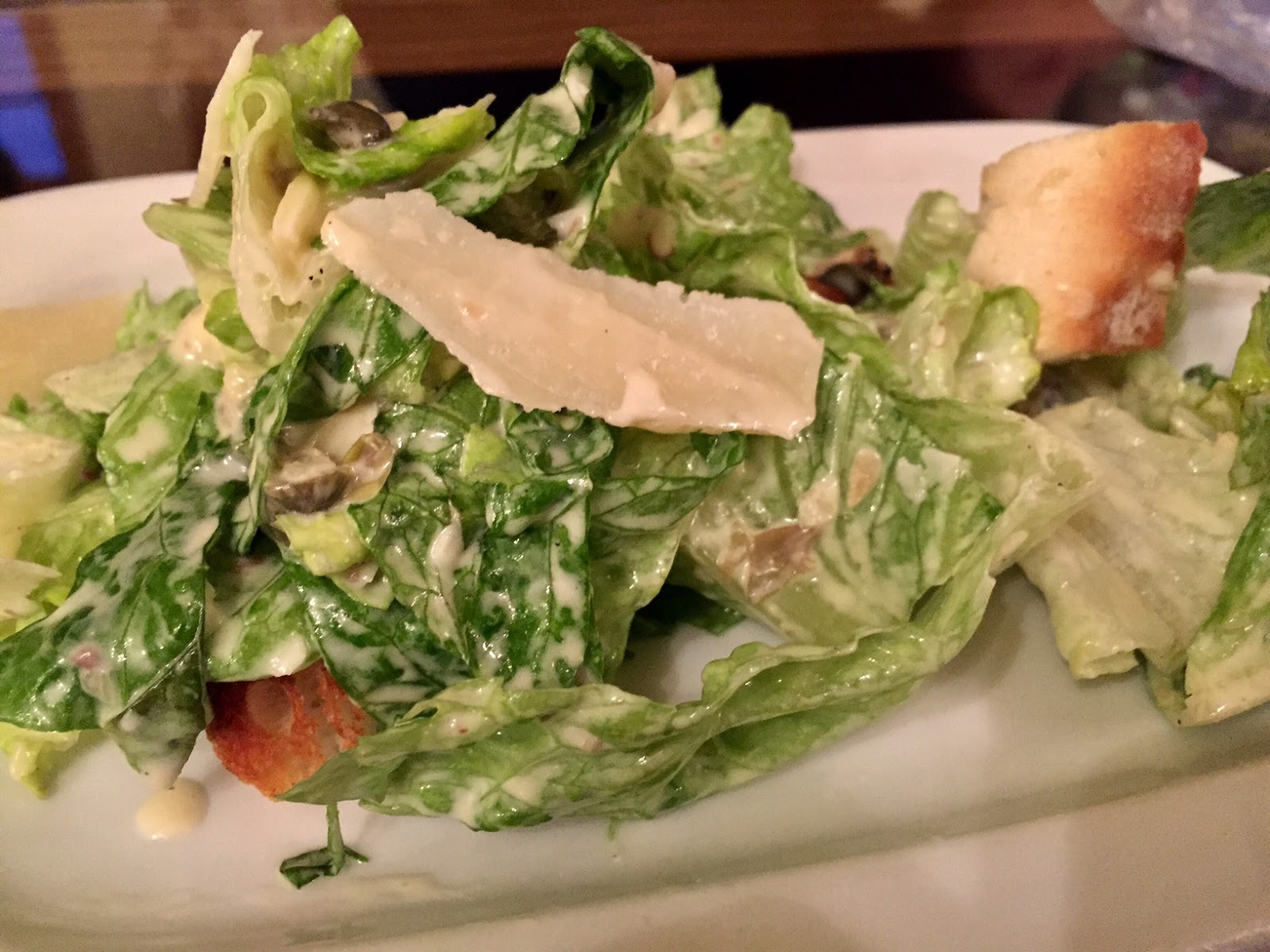 Římský salát důkladně propláchneme a nejlépe v odstředivce na salát osušíme, nakrájíme a přendáme do veliké mísy. V misce si smícháme všechny ingredience na zálivku: majonézu, jemně posekané ančovičky, utřený česnek a posekané kapary. Až před podáváním smícháme se salátem, krutony a parmezánem aby nám salát nezvadl, můžeme lehce dochutit olivovým olejem a pepřem, sůl už vzhledem k ingrediencím potřebovat nebudeme.